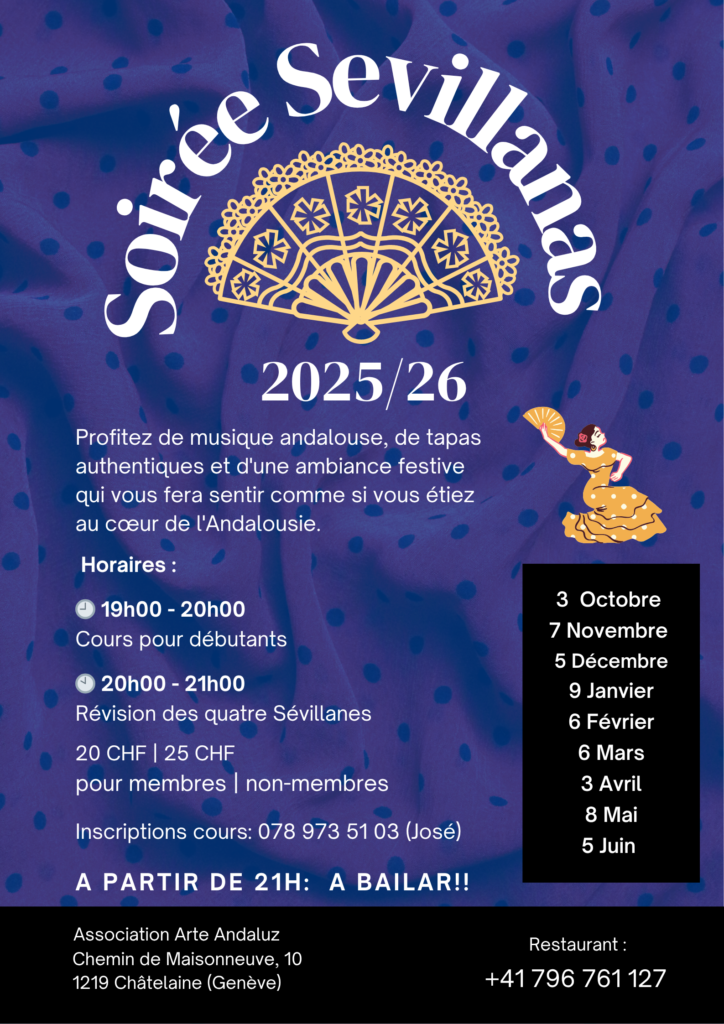 Apprenez à danser les Sévillanes et rejoignez la Soirée de feria à l’Association Arte Andaluz. 🌟